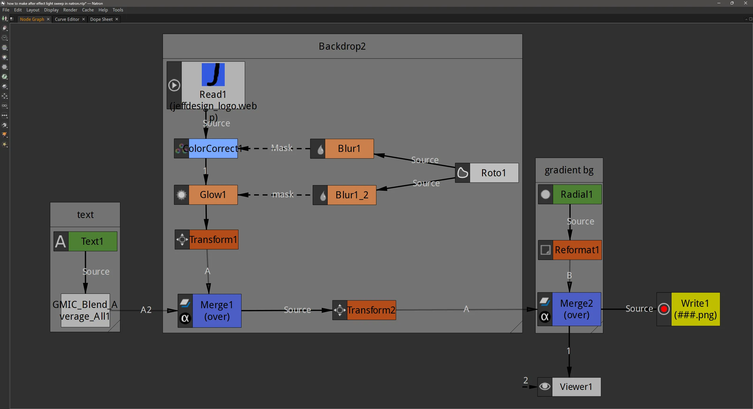 How to make after effect light sweep in natron